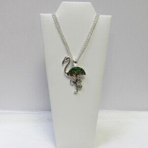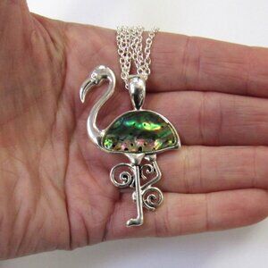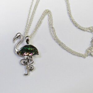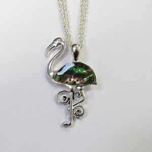 Silver Plated Abalone Shell Flamingo Charm Necklace Pendant