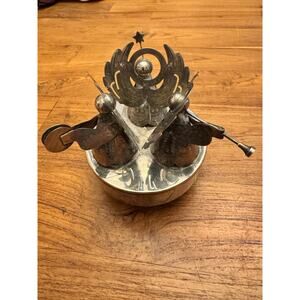 This is a beautiful vintage silver plated angel music box. It's in great condition and plays a lovely tune. Perfect for collectors or as a unique decorative piece. Add a touch of vintage charm to your home with this exquisite music box! It would be a great gift for any occasion. Grab it now before it's gone!