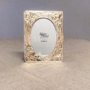 The frame holds a 3.5" X 5" picture. This Bowon, silver plated brass frame has a floral embossed design around the edges.