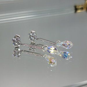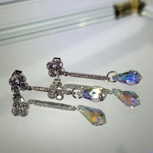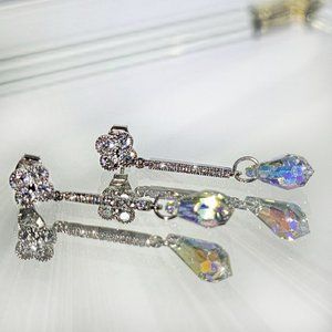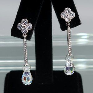 This is a STUNNING pair of HIGH QUALITY crystal drop earrings with silver plated clover studs and micro pave bar with cubic zirconia and an Authentic Swarovski Crystal pendant.
