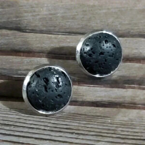 Black Volcanic Lava Domed Aromatherapy Cabochon Silver Plated Stud Earrings