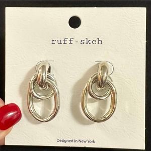 Silver Plated Double Ringed Pierced Earrings Designed In New York, NWT