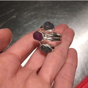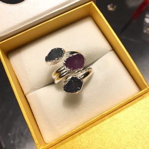 Handmade and never worn! Would make a perfect Christmas gift! Approximately a size 8. Silver plated, so is not 925 silver and will likely have another metal under the plating - most likely copper. I would advise to remove the ring if you are washing dishes or doing manual labor as not to erode the silver plating. I’d consider it more of a beautiful cocktail ring that needs to be cared for and loved to ensure that it lasts for years and years!