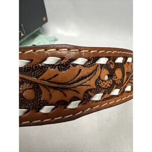 Silver Plated “END OF THE TRAIL” Indian Art Southwestern Belt Buckle Tooled Belt