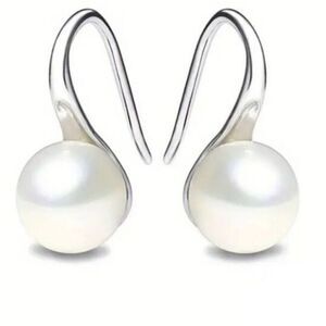 Silver Plated Earrings with Lab Pearl Decoration, Hook Earrings Elegant