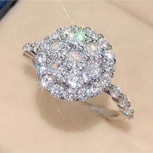 Silver Plated Engagement Wedding Ring with Micro Paved Round Zirconia Size 7