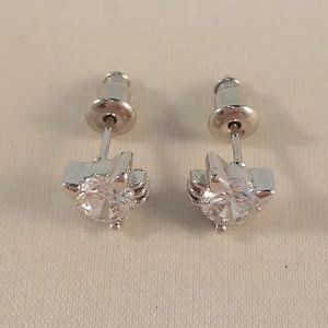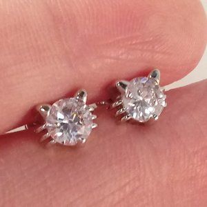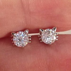 Beautifully crafted classic design cat stud earrings silver plated w/sparkling simulated diamond cubic zirconia gemstones. Polished shine, brand new, never been worn. Lead, nickel free. These gorgeous earrings sparkle.