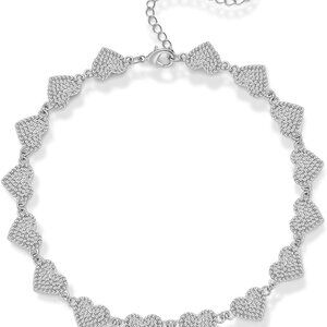 Rhinestone Heart Necklace: This silver choker necklace boasts several rhinestone heart charms, adding a sophisticated shine that elevates any outfit.