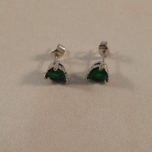 Beautifully crafted classic design heart zircon stud earrings silver plated w/large heart shape emerald green simulated diamond topaz zircon gemstones. Polished shine, brand new, never been worn. Lead and nickel free. These earrings sparkle.