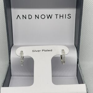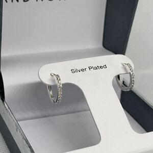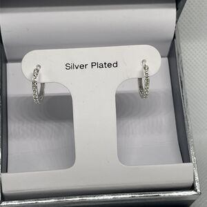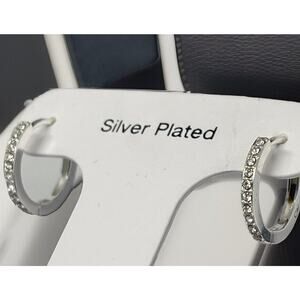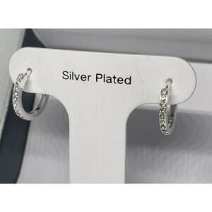 Silver Plated Hoop Earrings Stunning Crystal Shiny Chic Elegant Style Trendy NWT