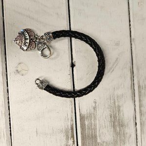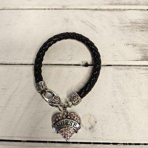 Silver Plated Leather Bracelet with Pink Crystal Nurse Charm size 7.5" Inches