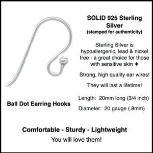 SOLID 925 Sterling Silver (stamped for authenticity) Ball Dot Earring Hooks.