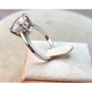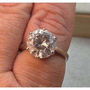 Silver Plated Round Cut Clear CZ Solitaire Engagement Ring Size 9 Elegant Desig