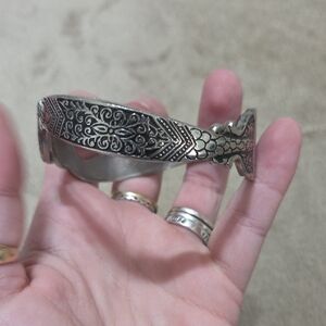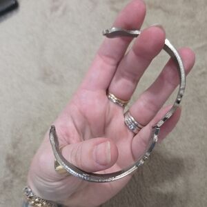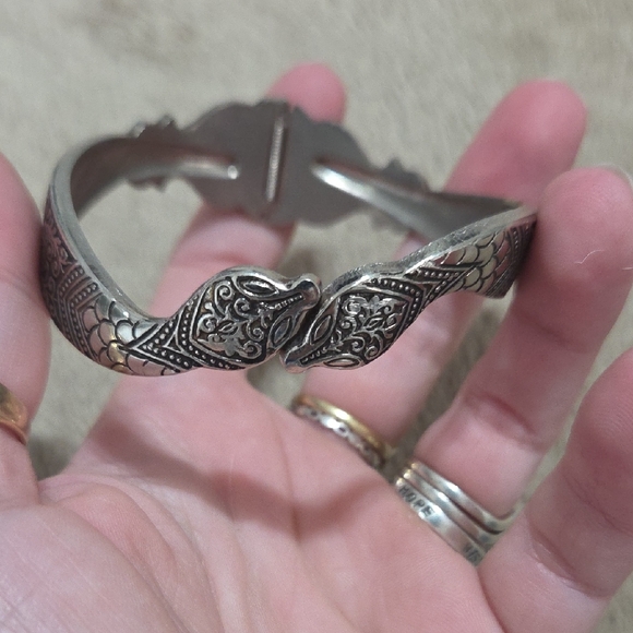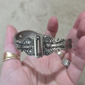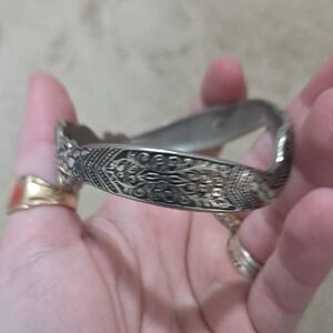silver plated black tarnish expands open and closed with spring bangle bracelet vintage