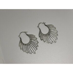 Silver Plated Traced Feather Hope Earrings Delicate Vintage Jewelry