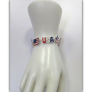 Silver Plated USA American Flag Patriotic Charm Bracelet W/ Magnetic Clasp