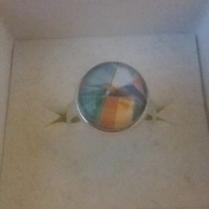 Pretty colors, real glass top cabochon brand new. Very sturdy metal