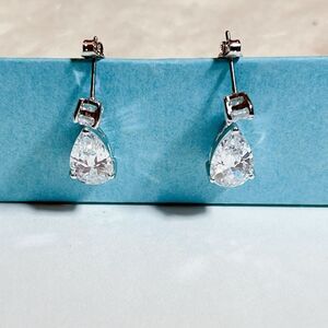 Silver Polished CZ Pear Shaped Post Dangle Earrings Celebrity GLAM New