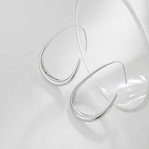 Silver Polished Lightweight Teardrop Large Oval Pull Hoop Earrings for Women