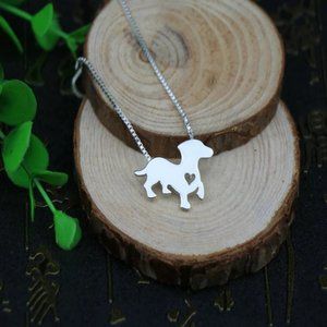 Silver Prancing Puppy Necklace - Cute as can be, little puppy captured in prancing steps. Silver Plated Charm necklace with open heart embellishment. Brand New. Gift Boxed.