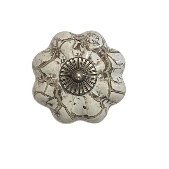 Silver Pumkin Knob Pull with Grey Marble Finish