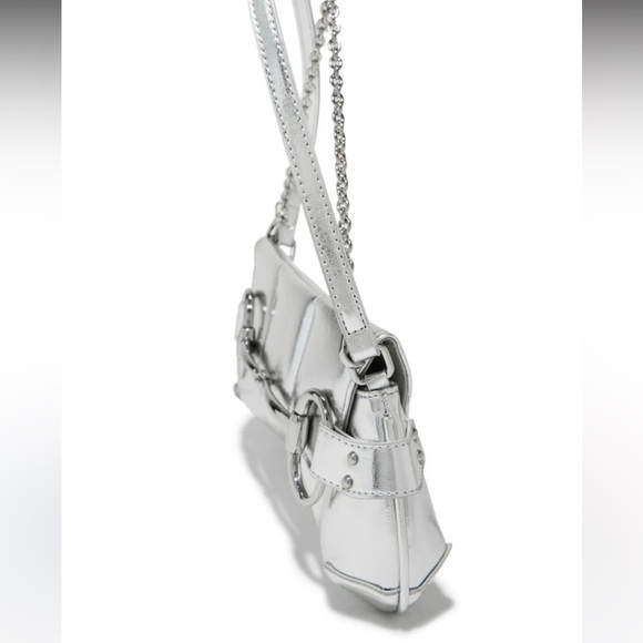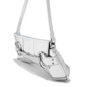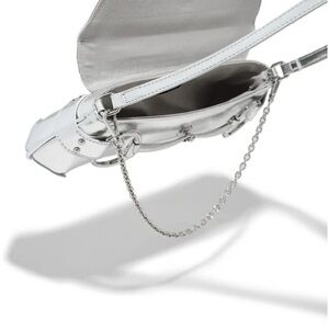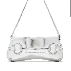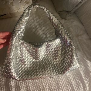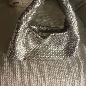 Two silver purses. Shoulder bag style or can be worn at elbow. The woven one does have a cross body strap. Each worn twice.