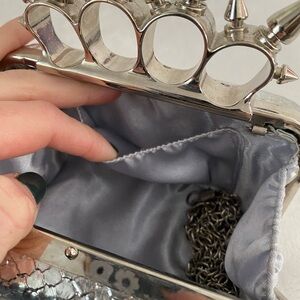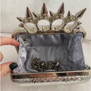 Silver Python Knuckle Clutch