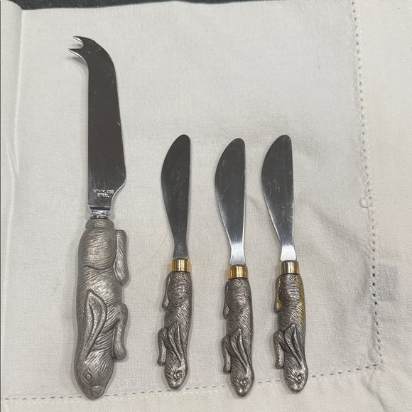 Elegant cheese knife set featuring intricate rabbit handle designs. Perfect for adding a touch of whimsy to your dining experience.