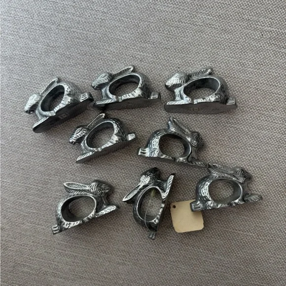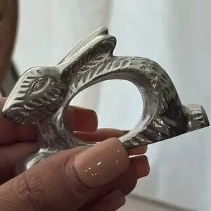 Set of silver rabbit-shaped napkin rings. Perfect for adding charm to your table setting.