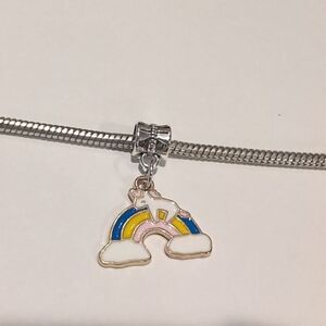 Silver Rainbow with Clouds Unicorn Enamel Charm for Pandora Style Bracelet