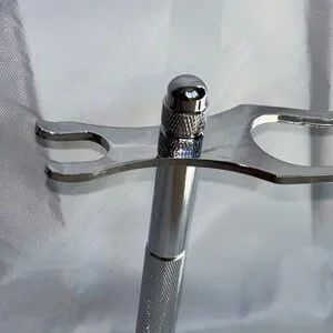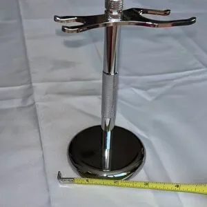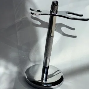 Elegant silver razor stand. Perfect for organizing your shaving tools.