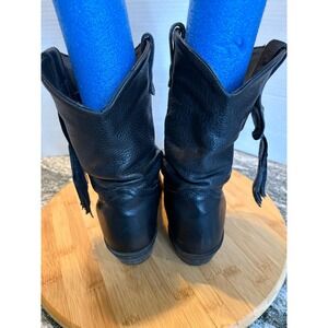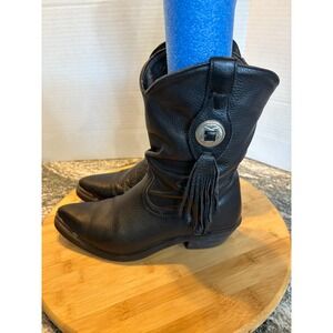 Silver Rebel Black Leather Cowboy Ankle Boots Tassels Western Size 7 G