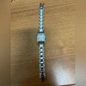 Elegant silver watch with a rectangular face. Perfect for any occasion.