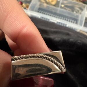 Elegant silver rectangular ring featuring a unique rope detail. Perfect for adding a touch of sophistication. these are silver links with a tie tab to go along with it. It is vinegary good conditio