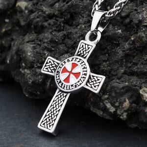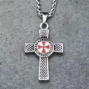 Silver Red Crusader Crusades Cross Necklace Men's Christmas Birthday Anniversary Valentines Faith Vintage Fashion Gift With Complementary Drawstring Gift bag.