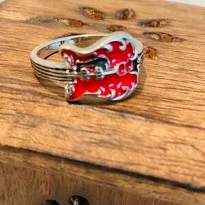 Silver & Red Guitar Design Fashionable Ring Size 7.5