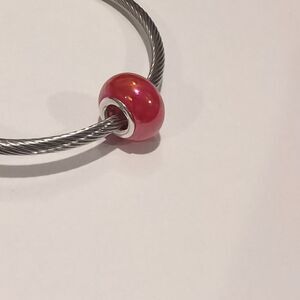 Silver Red Pearlesque Charm for Pandora Style Bracelet