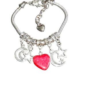 Silver Red Stone Heart Shaped Moon Adjustable Bracelet