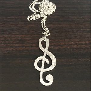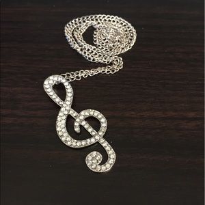 Beautiful silver and Rhinestone treble clef long necklace. 26" long, 2 1/4" X 1" on the music note. Very pretty and shiny.