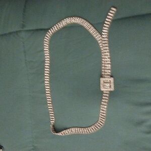 Elegant silver rhinestone belt with a sparkling design.