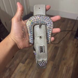 Sparkling silver belt with rhinestone embellishments. Perfect for adding glam to any outfit. Unisex!