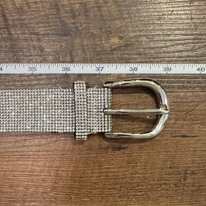 Sparkling silver rhinestone belt with a shiny buckle. Perfect for adding glamour to any outfit.