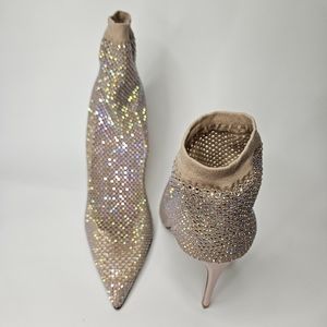 Pre-owned Silver Rhinestone Booties. Stylish and great boot to add to your wardrobe.
