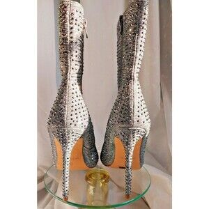 Silver Rhinestone Boots Womens Size 9 Glaze 4" Heel Pointed Toe