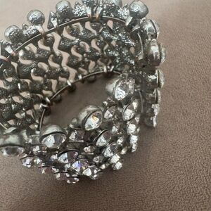 Elegant silver bracelet adorned with sparkling rhinestones. Perfect for adding a touch of glamour.