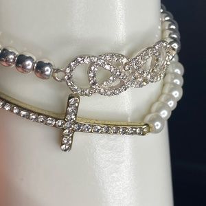 Silver & Rhinestone Bracelet Set Infinity & Cross