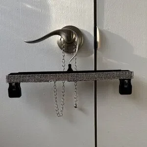 Silver belt with all rhinestones intact. Goes perfectly with any dress to cinch the waistline.