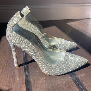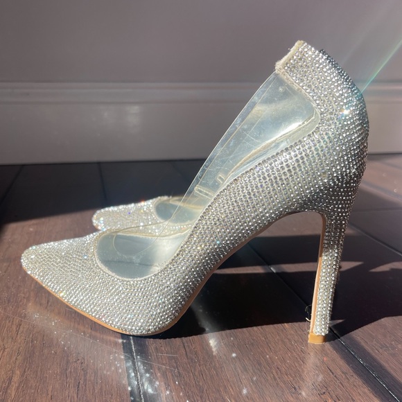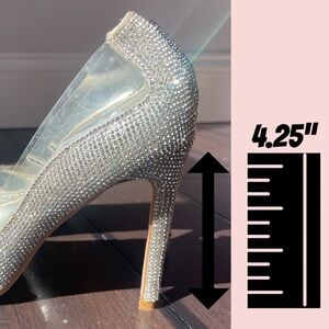 Fashion nova rhinestone heels in very good pre loved condition. Size 7.5 and true to size. Heel height is 4.25”… the heel itself is 4” and the heel cap/tip is .25