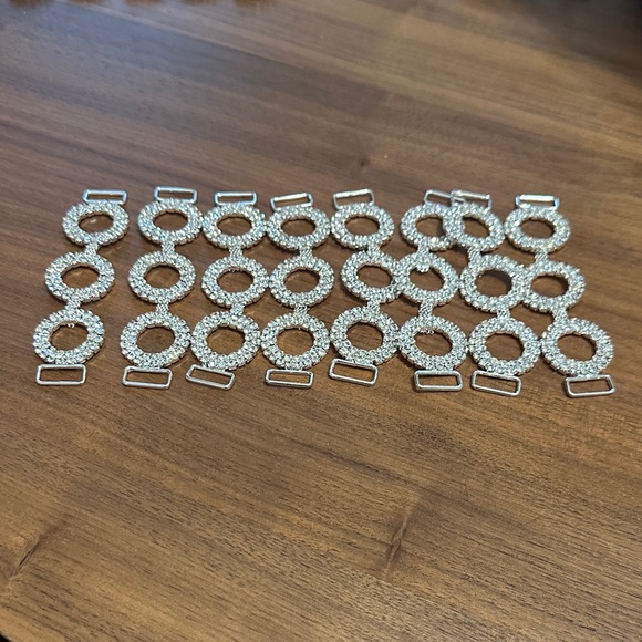 Set of eight circular rhinestone connectors. Perfect for adding bling to bathing suits, bikinis, dresses, or use your imagination. Perfect for adding sparkle to any outfit