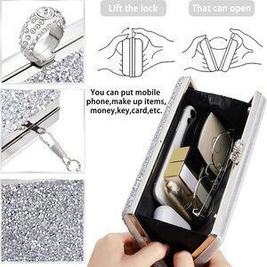 Material: Rhinestone diamond embellishments on a sturdy, sparkling body, equipped with high-quality hardware for durability. Easy to open with the push lock.